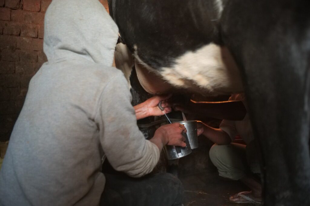 Les vaches sont généralement traites deux à trois fois par jour. Après la naissance d’un veau, elles produisent du lait pendant environ 10 mois, pouvant atteindre jusqu’à 25 litres par jour.
